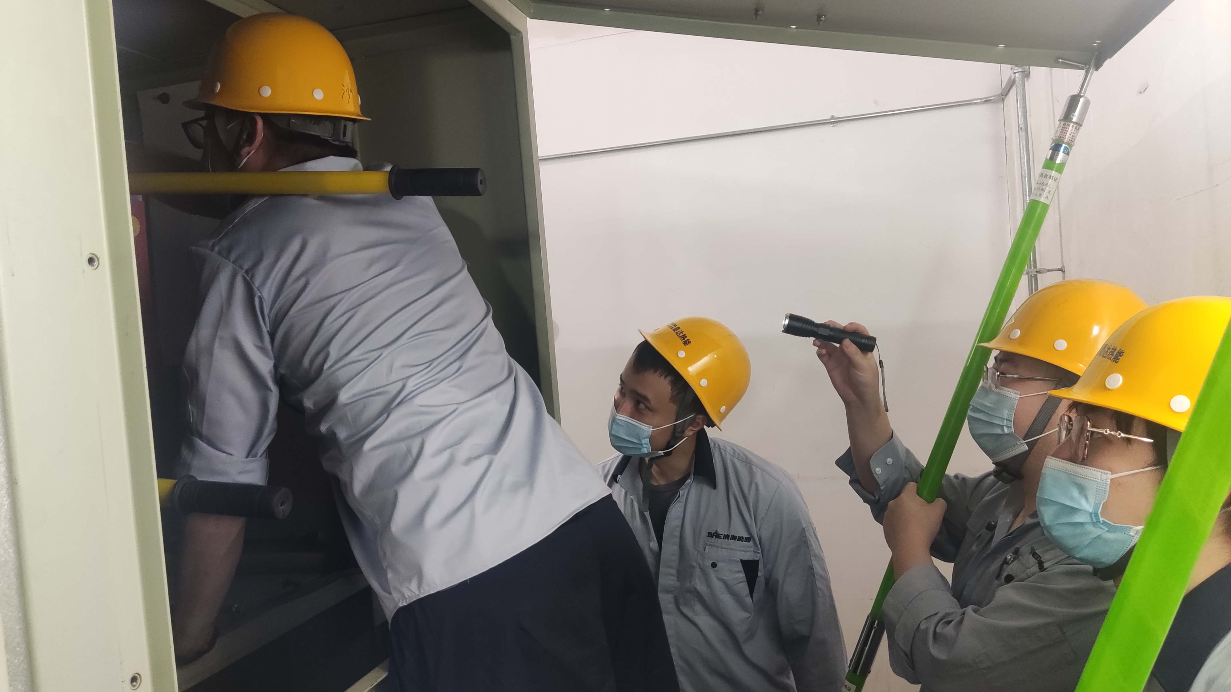 郑玉龙同志巡视检修工作 滨海热电厂职工检查配电柜母线箱
