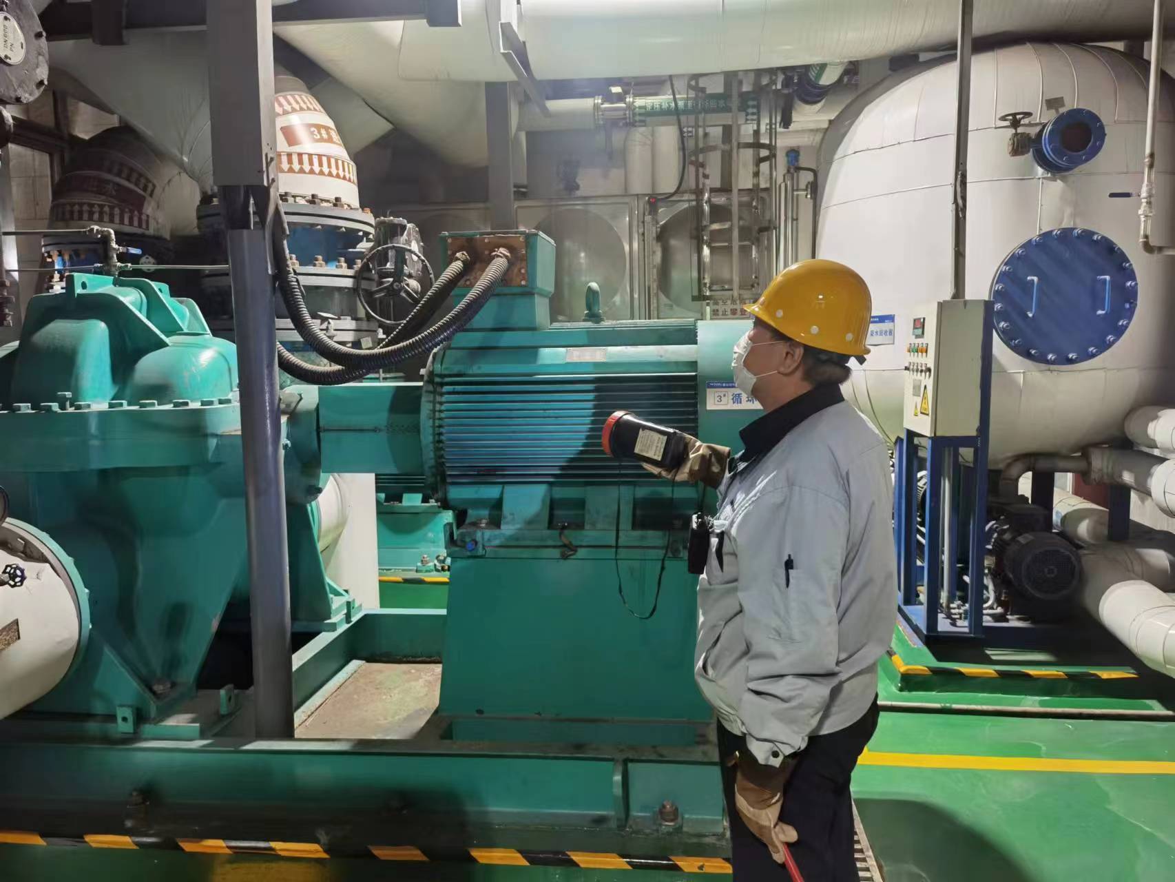 晨光熹微,国华能源的职工依然在为暖而战,当班的运行人员对发电机进行点检测温,保证设备运行稳定。