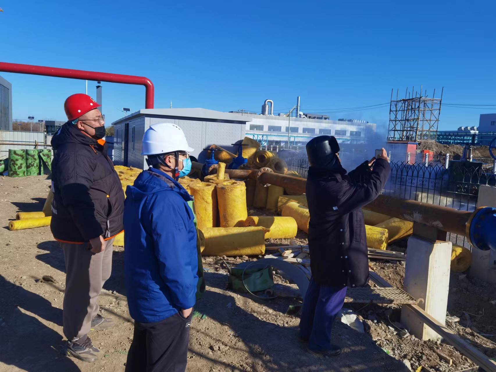 午后阳光正酣,泰达热能安装公司职工对天津艾米德生物制药有限公司核酸药物产业项目蒸汽计量减压工程进行验收及吹扫工作。
