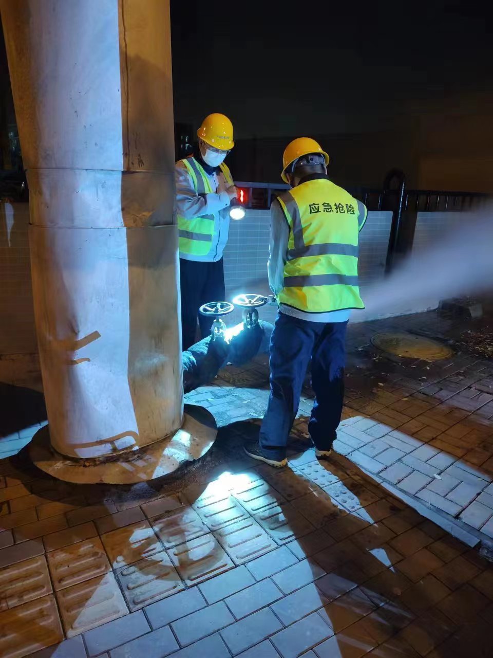 万籁寂静,东方欲晓。运管中心职工克服极寒和人手不足等种种困难,对八大街泰丰路交口美克蒸汽支网进行巡网排疏水操作,保障经开区蒸汽管网安全运行。