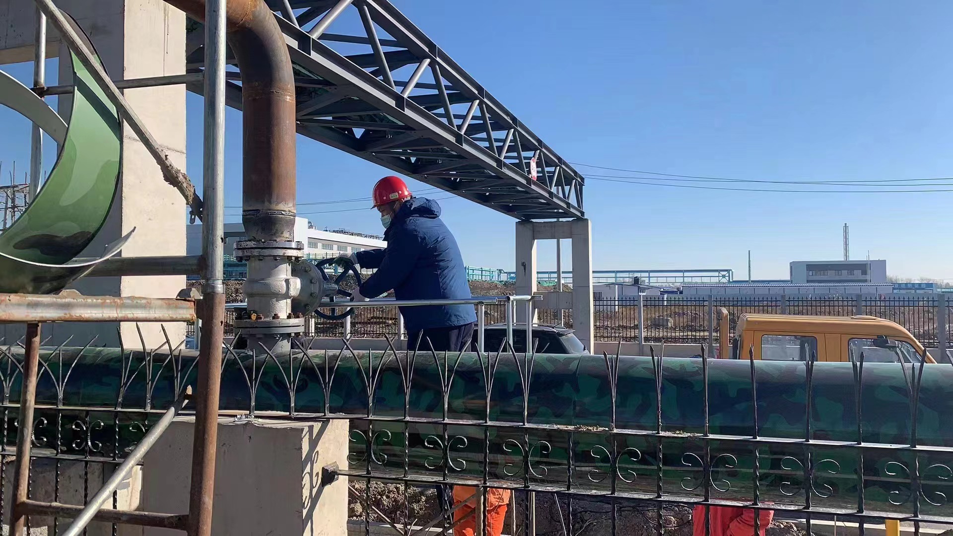 正午阳光正好,但温度已至零下,为了保障西区热用户正常用热,西区热电职工冒着严寒,拖着不适的身体,为东南组团企业艾米德送汽吹扫,确保用户用热无忧。