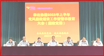8月24日,泰达热能党委、纪委联合组织召开2023年上半年党风廉政建设工作暨警示教育大会(廉政党课)。党委书记、总经理沈志刚同志总结2023年上半年党风廉政建设工作,部署下半年任务,并讲授廉政党课。党委副书记徐天大同志主持会议,纪委书记刘芳同志传达市纪委通报文件。公司领导班子成员、总经理助理、全体中层干部(含中层助理)参会。
